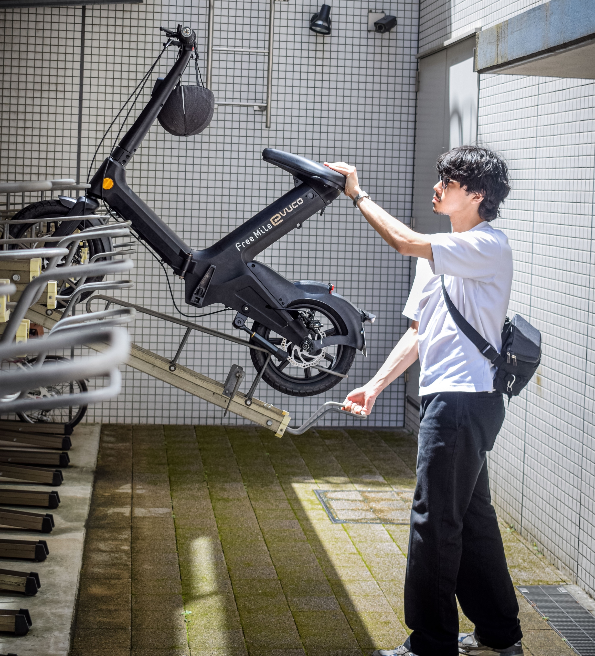 evuco(イブコ)なら、自転車感覚で駐輪場に置けるから、